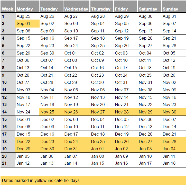 Nov 25–30: Fall Break